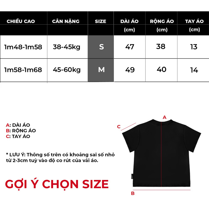 Thông tin chọn size ( kích cỡ ) áo thun local brand nữ DAvies