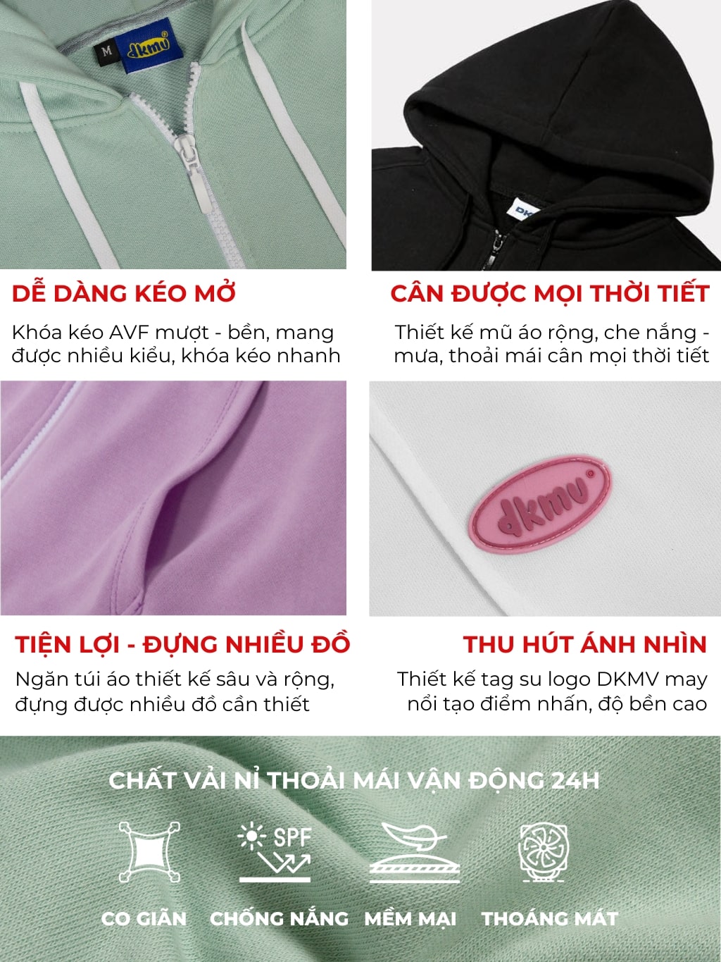 - Sợi vải mềm mịn, giữ nhiệt cơ thể tốt và ấm. Được làm chủ yếu từ chất Cotton và Spandex nên chất vải có khả năng co dãn tốt, phù hợp mọi thời tiết