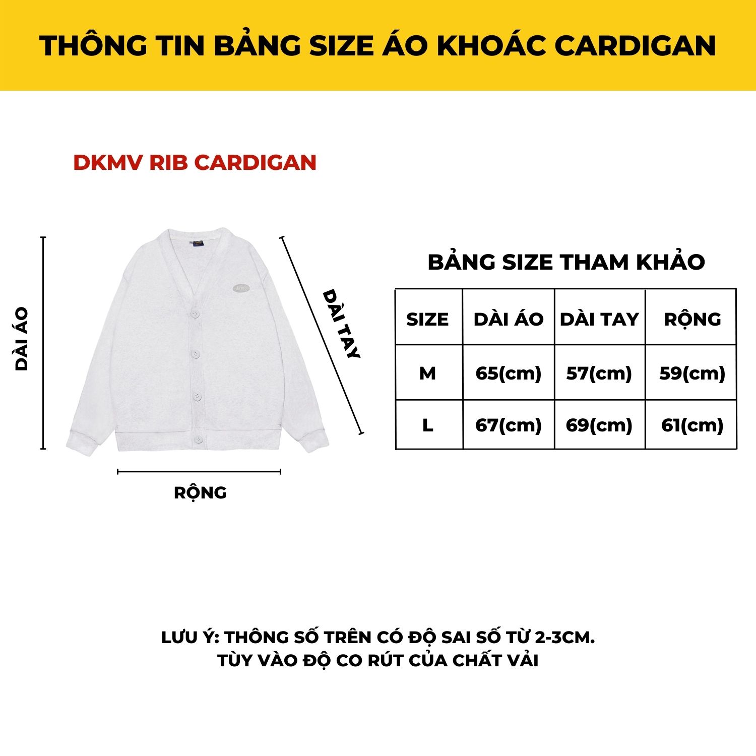 Thông tin kích thước áo khoác Cardigan Local Brand Rib Cardigan - Grey