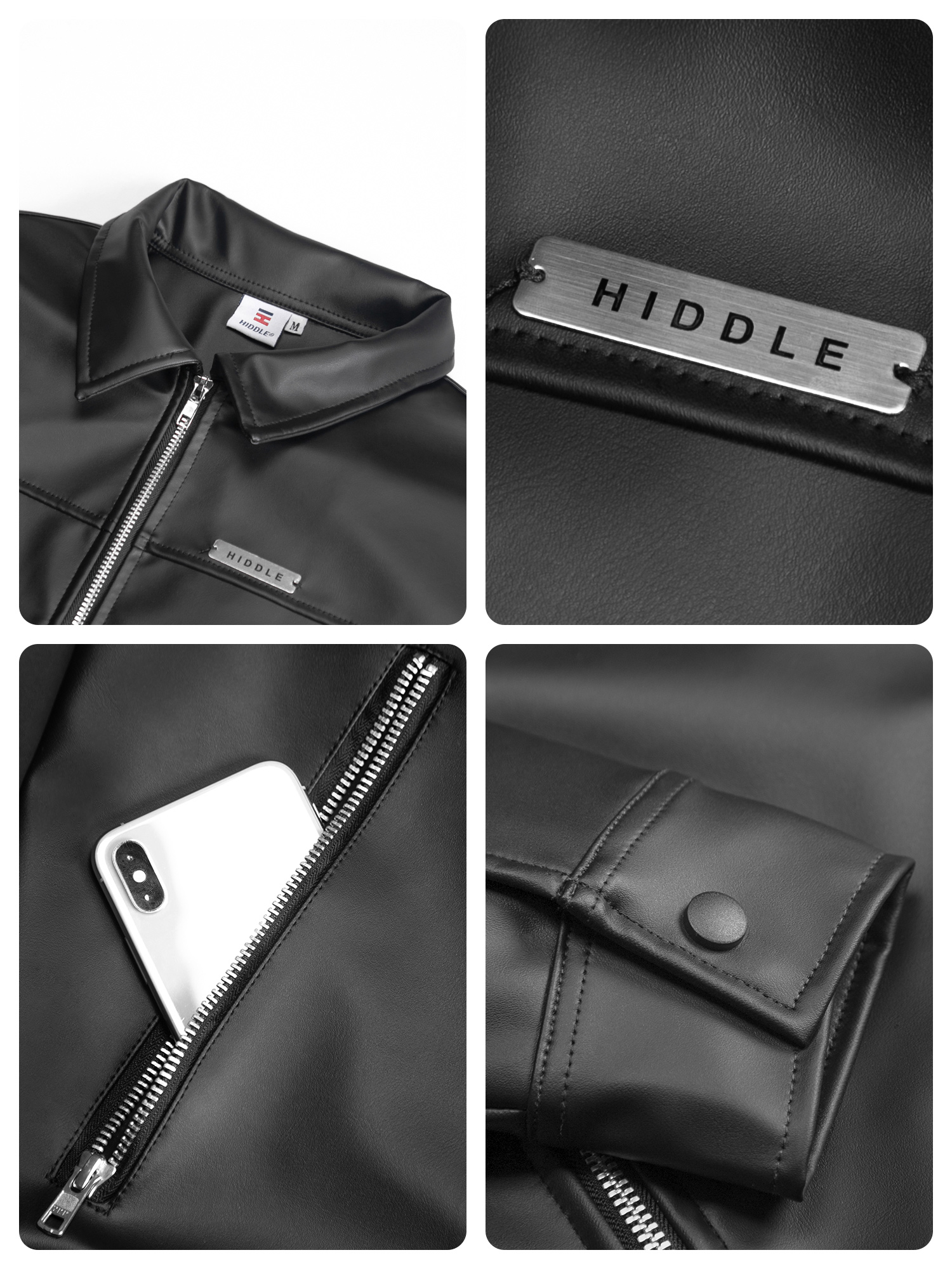 Áo da nam cao cấp chính hãng HIDDLE sử dụng phụ liệu chắc chắn, bền bỉ