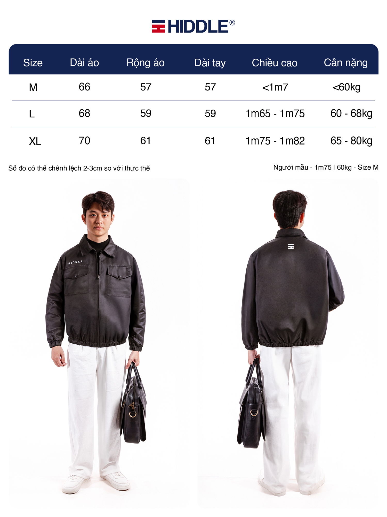 Bảng size áo khoác dù nam túi hộp nam cao cấp HIDDLE
