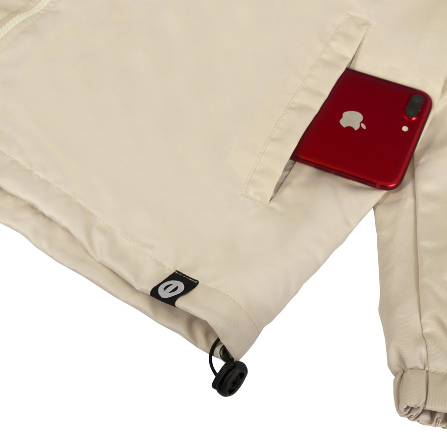 - Thiết kế: áo khoác local brand basic màu be có phần cổ trụ, ôm quanh phần cổ giúp bạn bảo vệ cổ và họng của mình không bị lạnh vào ngày đông hay tránh côn trùng. Tay áo dài có bo chun, ôm trọn cổ tay bạn và ở phần chân áo cũng bo chun. Điều này giúp bạn tránh gió lùa, không lo bị lạnh khi đi đường. Ở phiên bản màu be, logo ONTOP chính hãng được thêu màu đen, nổi bật ở phía trước ngực áo.