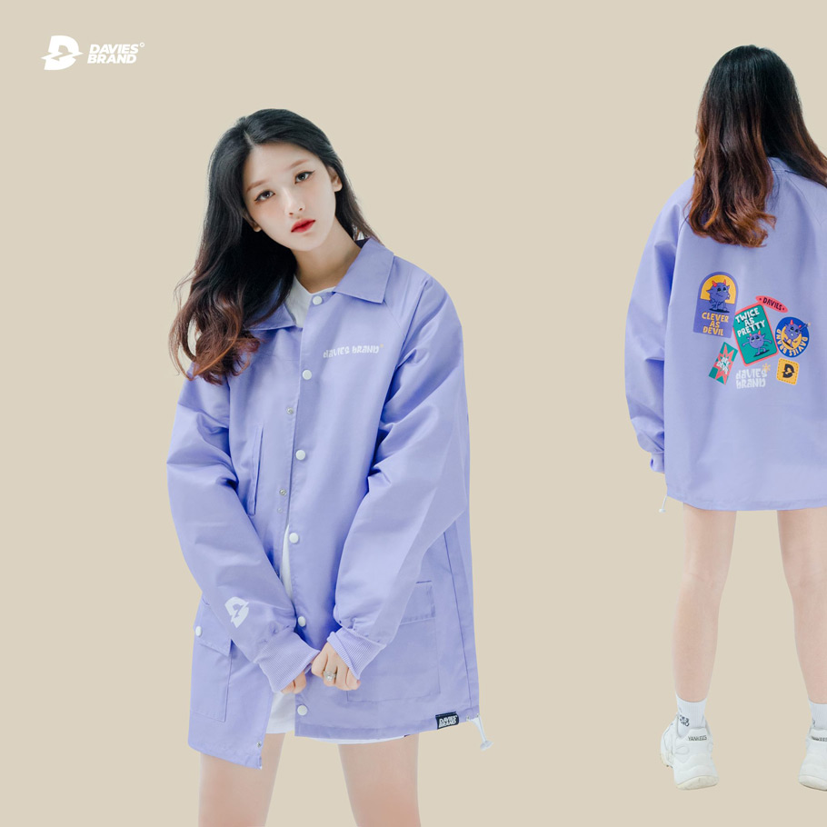Mang đẹp cùng áo khoác oversize dù hai lớp nữ Devil sticker với local brand Davies.