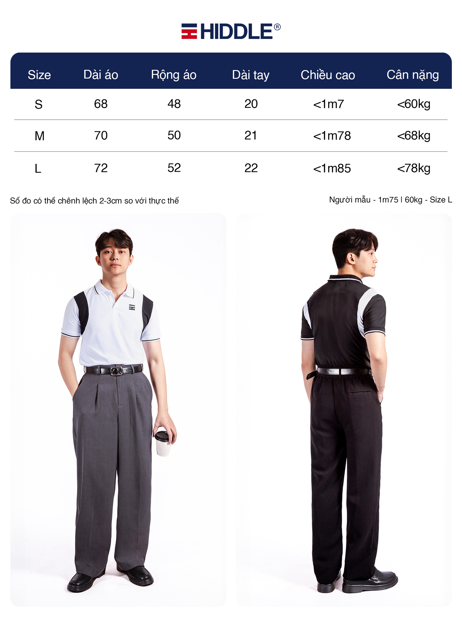 Bảng size áo polo nam cao cấp HIDDLE