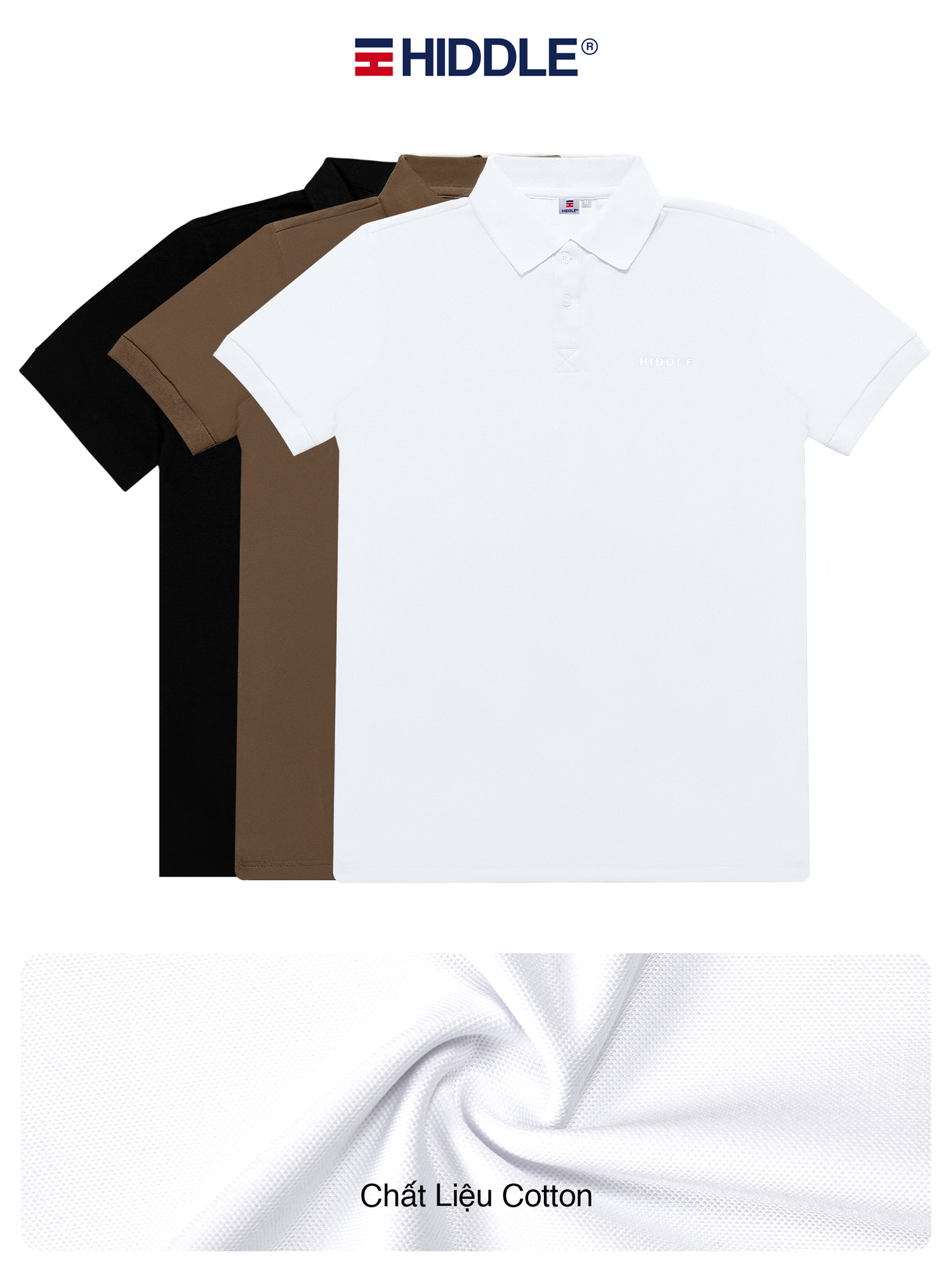 HÌNH ẢNH ÁO THUN POLO NAM HIDDLE MÀU TRẮNG THÊU LOGO CHỮ NỔI