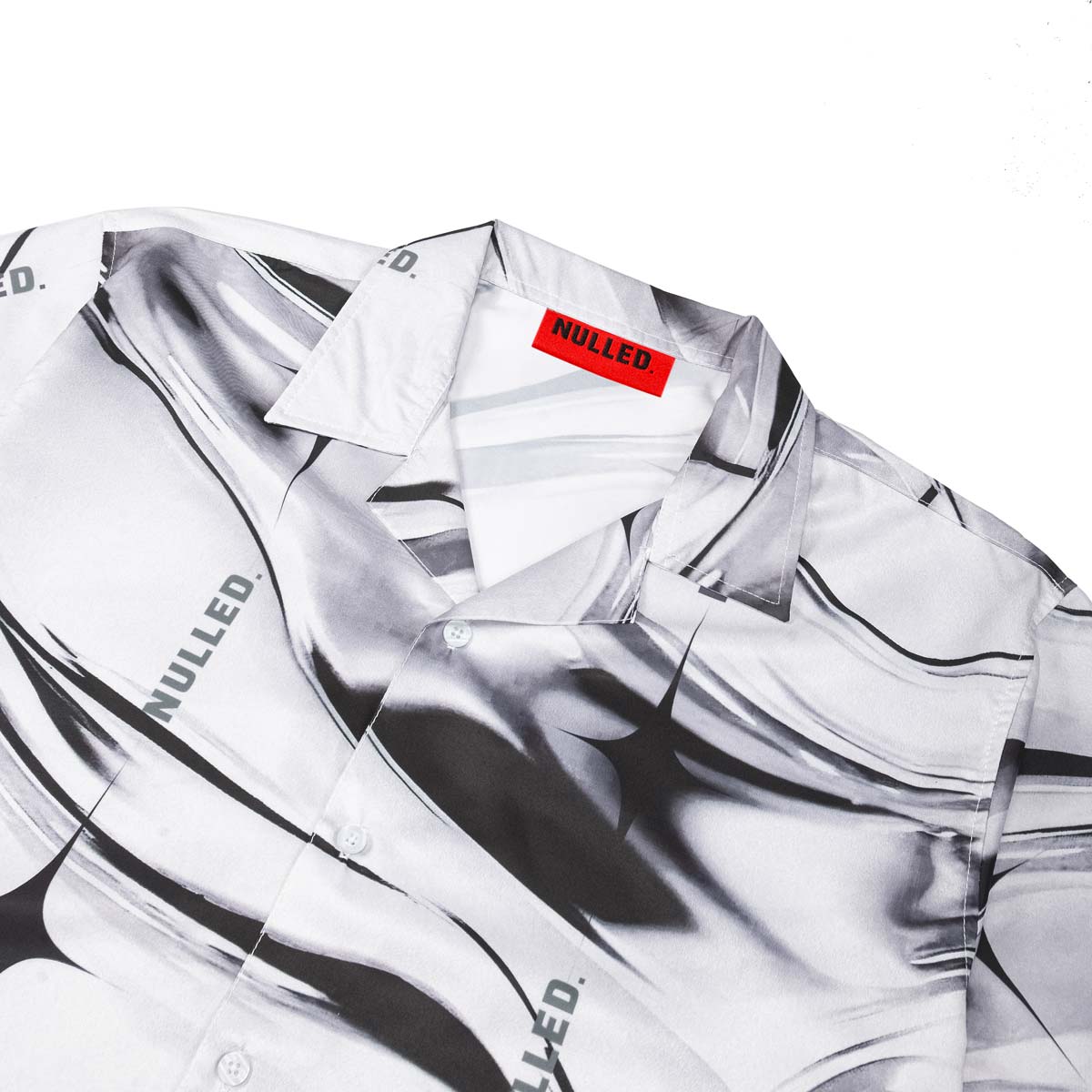 Tag vải thương hiệu được may chỉn chu, chắc chắn, tăng độ nhận diện sản phẩm chính hãng cho áo sơ mi tay ngắn của NULLED