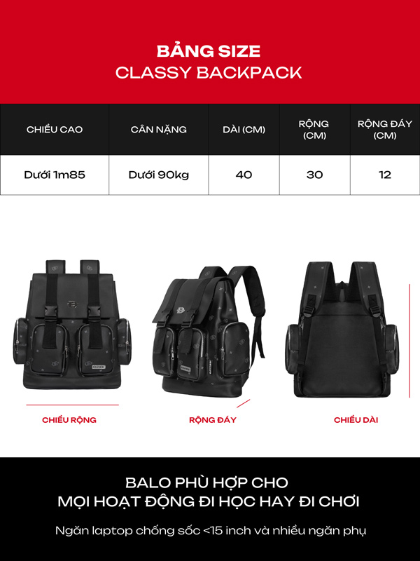 Kích thước balo da đi học nam được thiết kế chú trọng tính ứng dụng: