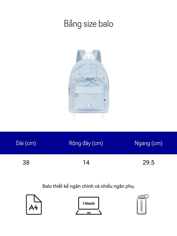 Ghi điểm với hai chiếc nơ xinh xắn cùng chi tiết rút dây lạ mắt, chiếc balo sẽ giúp bé trông thật thu hút và nổi bật giữa đám đông.