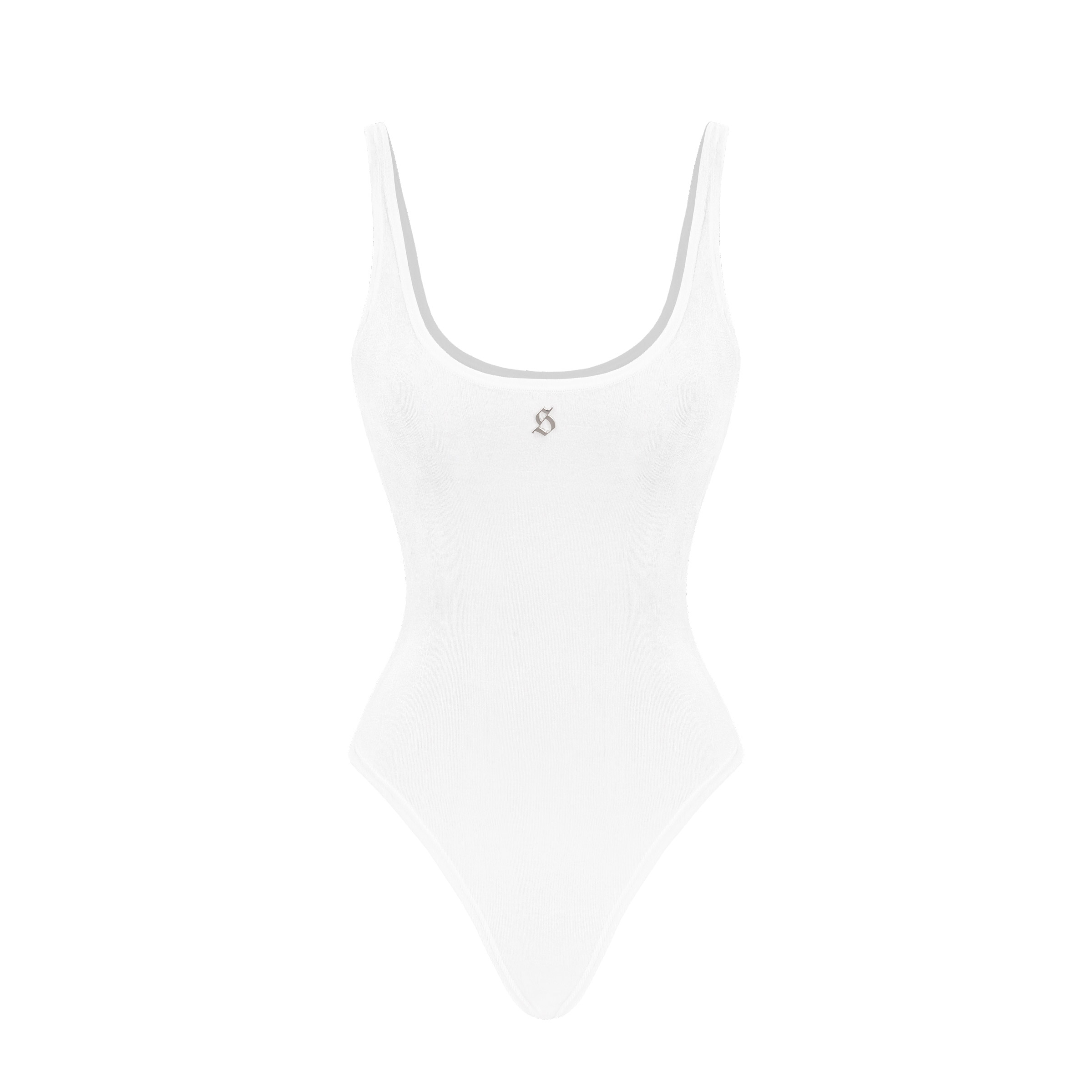 Bodysuit có thiết kế cổ áo sâu đầy quyến rũ cùng logo inox tinh tế sẽ tôn lên vóc dáng hoàn hảo và vẻ đẹp táo bạo của bạn.
