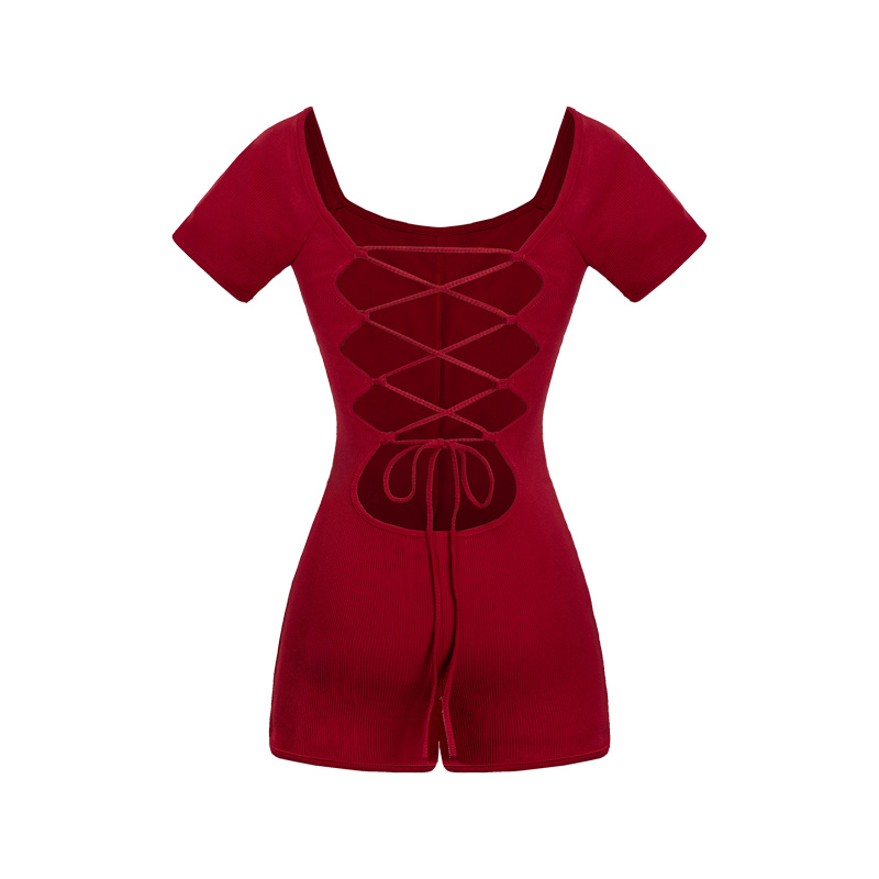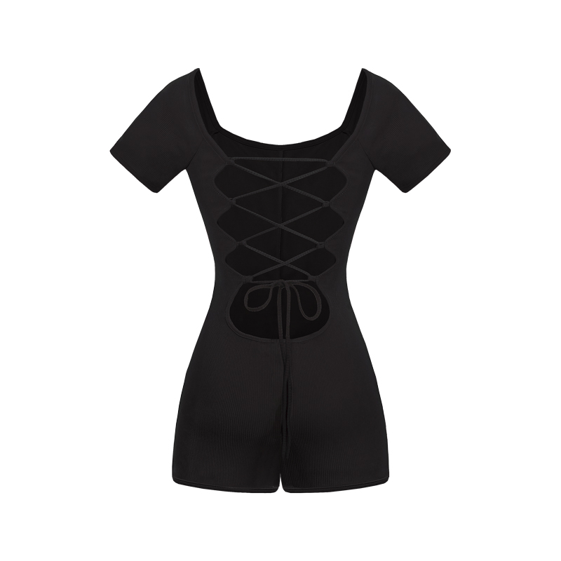Jumpsuit dáng đùi ngắn tay thiết kế đan dây lưng quyến rũ, cùng chi tiết dây lưng đan gợi cảm của Jumpsuit không chỉ tôn lên đường cong quyến rũ mà còn góp phần tạo nên vẻ ngoài sang trọng cho người mặc.