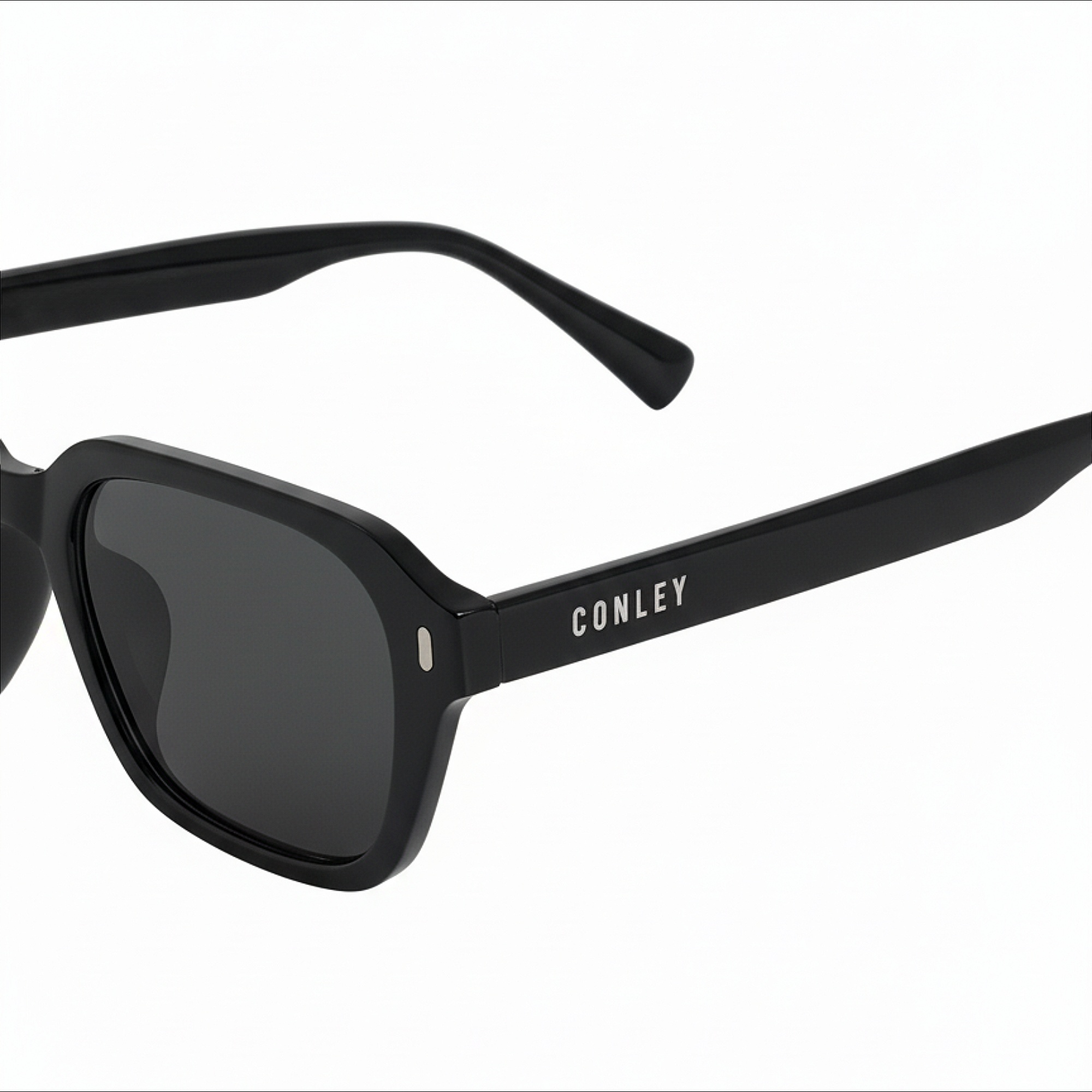 Sự tinh tế nằm ở các chi tiết nhỏ. Logo CONLEY được xử lý khéo léo, nổi bật trên gọng kính, khẳng định thương hiệu và chất lượng sản phẩm. Bản lề kim loại chắc chắn là yếu tố then chốt, giúp kính có độ mở đóng mượt mà, đảm bảo độ bền cơ học cho sản phẩm.