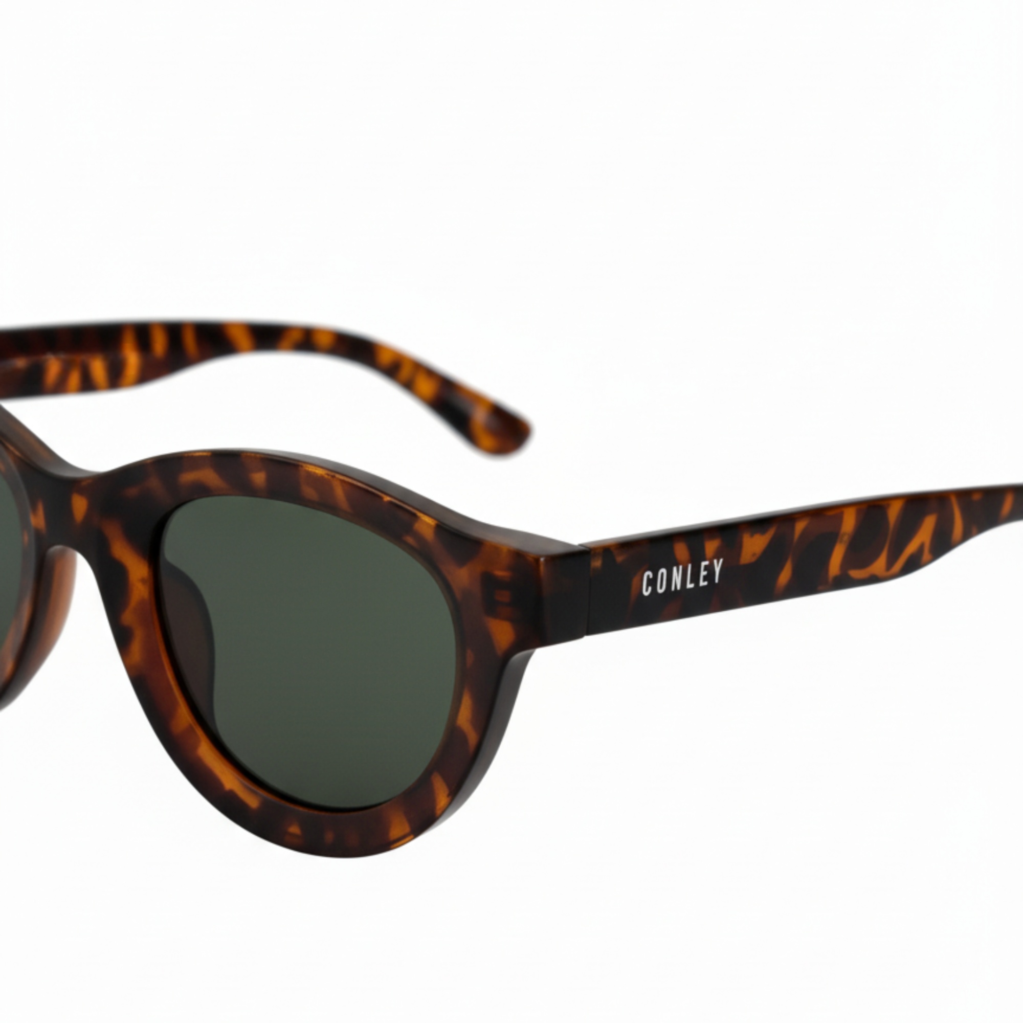 Điểm nhấn nhận diện thương hiệu được thể hiện tinh tế qua logo CONLEY, được in nổi bật, sắc nét ở gọng kính bên hông, khẳng định chất lượng và nguồn gốc chính hãng của sản phẩm.