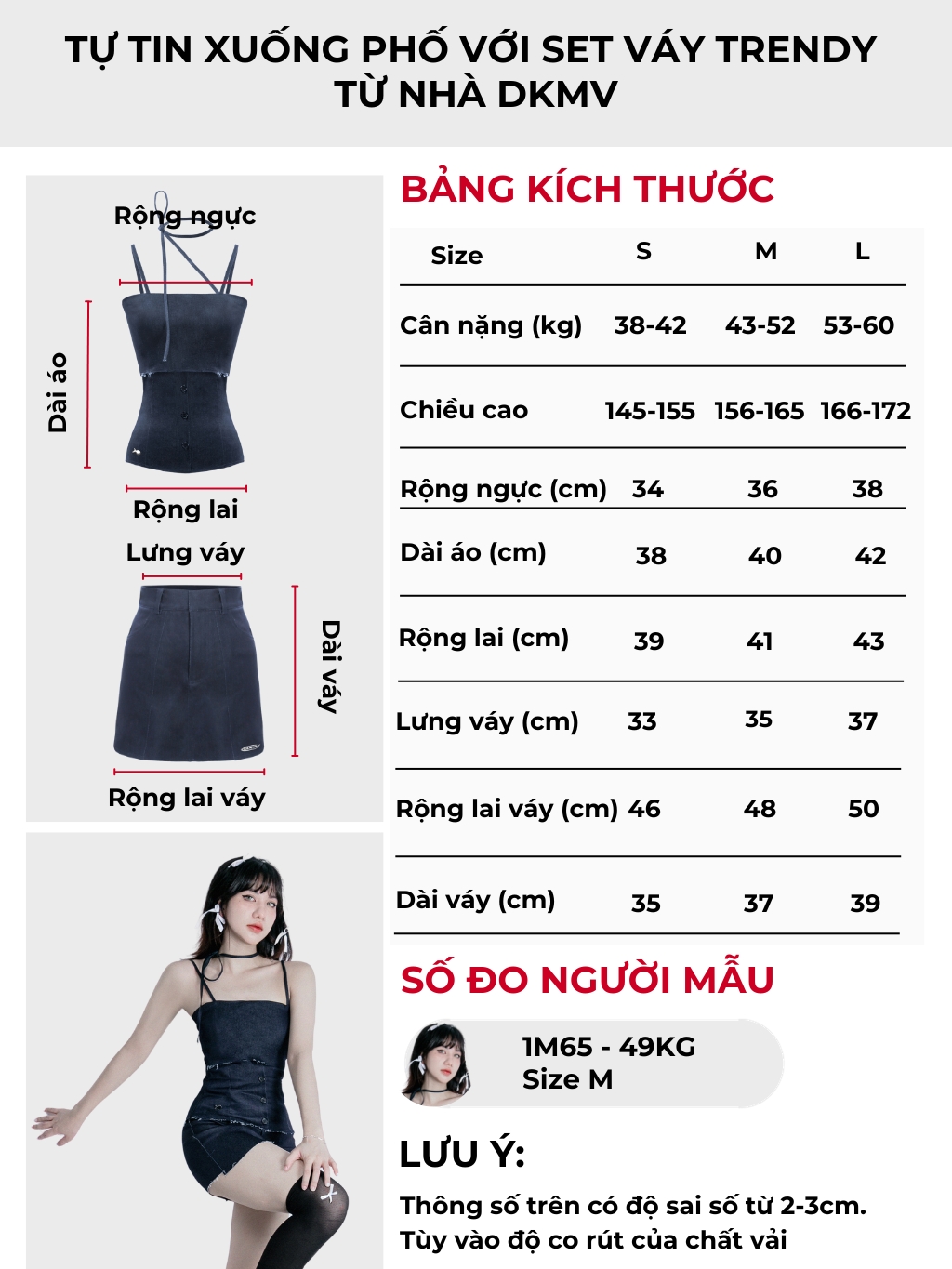 Kích thước set chân váy jean local brand DKMV Set Rayon