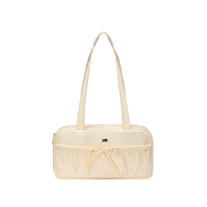 Cảm giác mịn màng và thoải mái với chất liệu dù lạnh, pha chút tinh nghịch của chiếc logo Bé cá, điểm nhẹ chiếc nơ xinh càng giúp bạn nổi bật mọi nơi theo mang theo em Baguette Bag.
