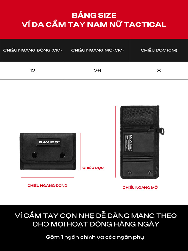 Với người yêu thích thời trang đường phố không chỉ dừng lại ở trang phục hay các bộ outfit mà còn là những chiếc ví Local Brand đẹp có thiết kế độc đáo và phong cách. Hiều được nhu cầu của giới trẻ Davies không ngừng phát triển và đổi mới liên tục cho ra mắt ví da nam nữ Tactical Wallet chính là lựa chọn hoàn hảo cho bạn.